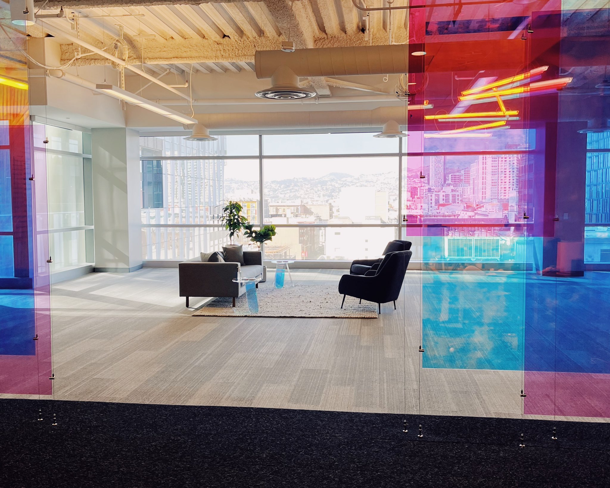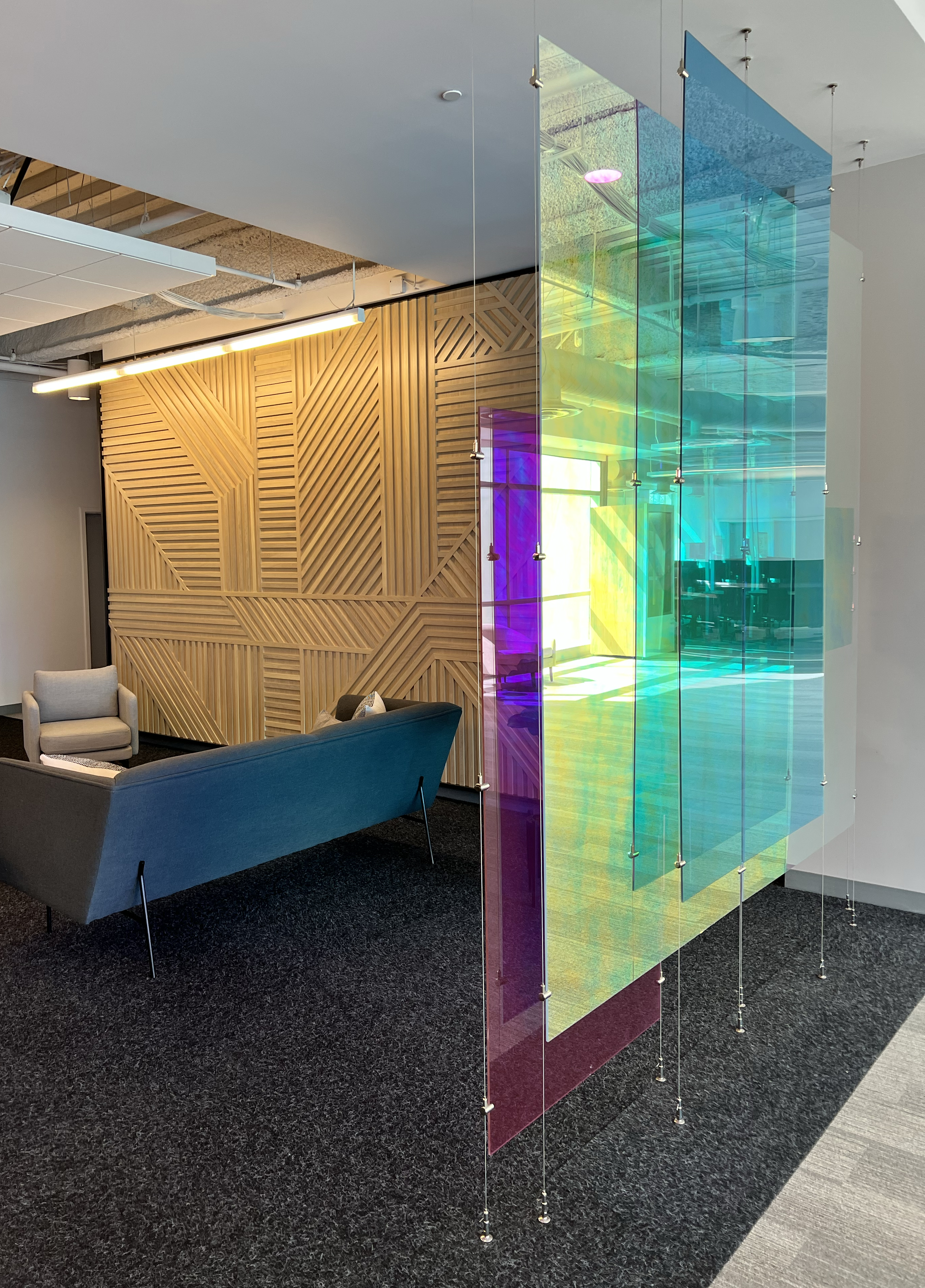 Scale HQ lobby with colorful transparent panels referencing bounding boxes. Collaboration with Blitz. Photo by Lin Zagorski Latimer.