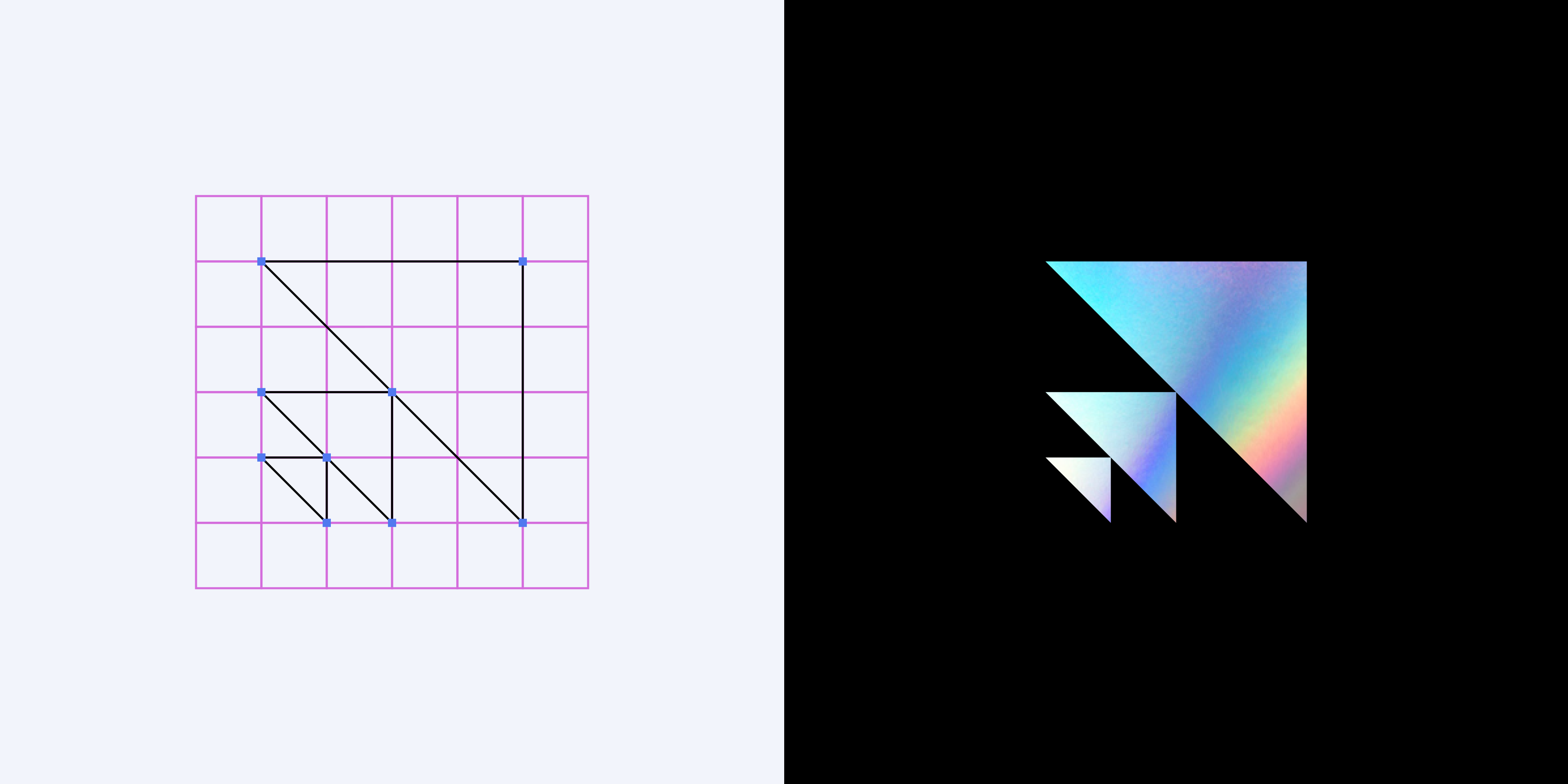 Scale logo symbol composed of three right triangles that double (or scale).