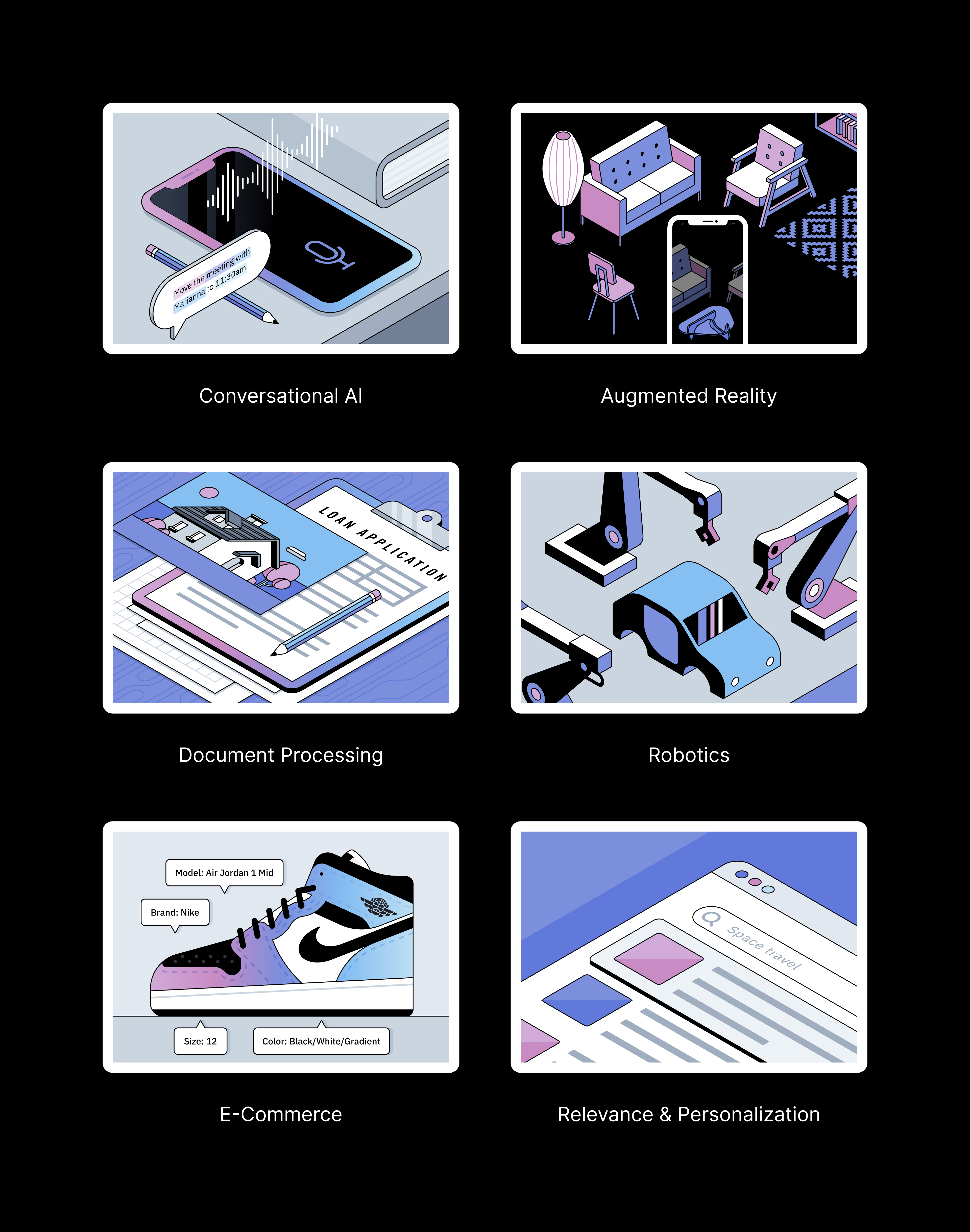 Isometric illustrations for various Scale product use cases.